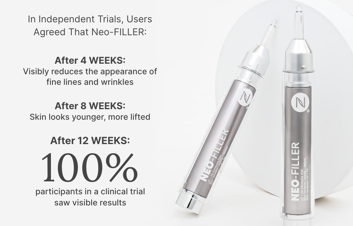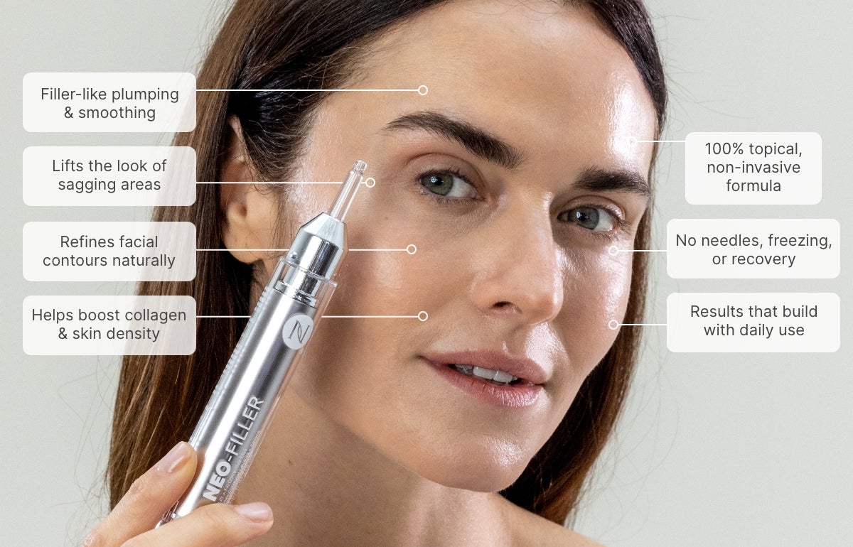Acts like filler. Feels like skincare. No needles required. Neo-FILLER is an innovative topical alternative to injectables. Designed to visibly plump, lift, and smooth the look of fine lines—naturally. Now, you can extend the transformation beyond your face. Show your neck some lifting love with the Neo-FILLER 2-Pack, created to supercharge your results and deliver a more complete, visibly lifted look.