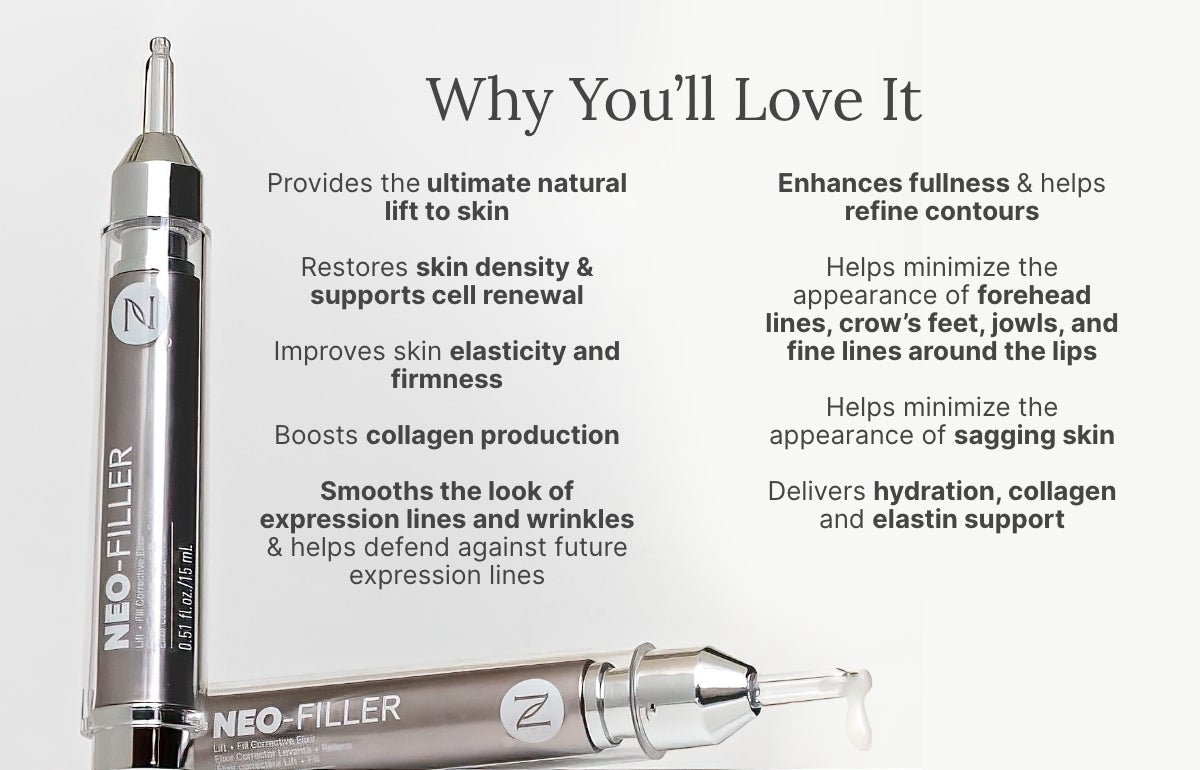 Neo-FILLER helps to replace lost volume and provides the ultimate natural lift. Firmer, more sculpted looking skin awaits.