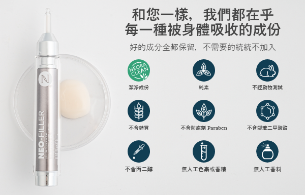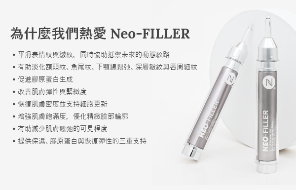 Neo-FILLER 為何能如此快速又有效? 我們將三大創新技術融合成一款獨特配方:尖端生長因子胜肽 + 植物幹細胞