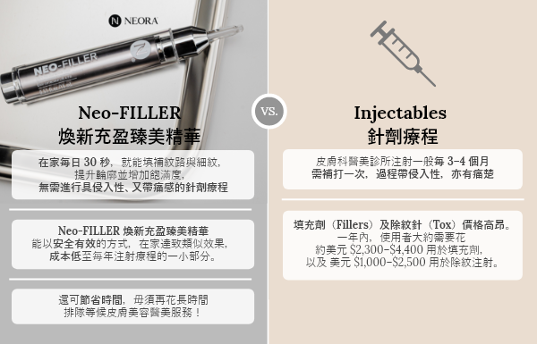 獨立測試中,使用者一致認同 Neo-FILLER煥新充盈臻美精華: