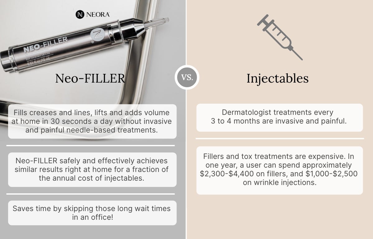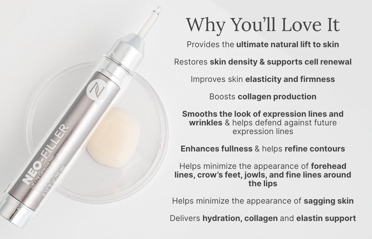 Acts like filler. Feels like skincare. No needles required. Neo-FILLER is an innovative topical alternative to injectables. Designed to visibly plump, lift, and smooth the look of fine lines—naturally.
