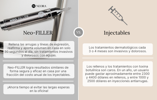 Actúa como relleno. Se siente como un cuidado para la piel. No requiere agujas. Neo-FILLER es una innovadora alternativa tópica a los inyectables.